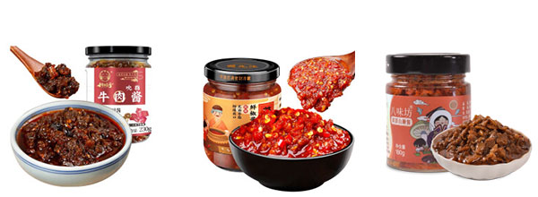 廚房醬料灌裝貼標旋蓋封箱機生產線樣品展示